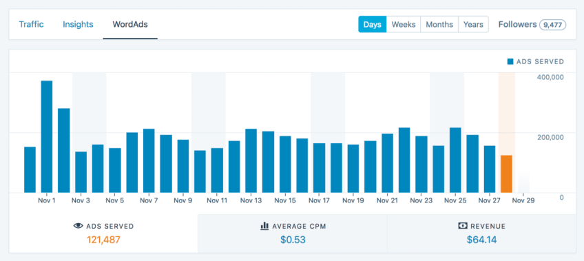 The Ad Block is deactivated by default. It can be activated at any time by toggling the Ads setting at Jetpack → Settings → Traffic in your dashboard. You will need a Jetpack plan that includes ads to use this block.