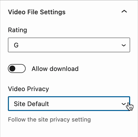 Allow Download: Control whether the VideoPress player should include the option for users to download the video.