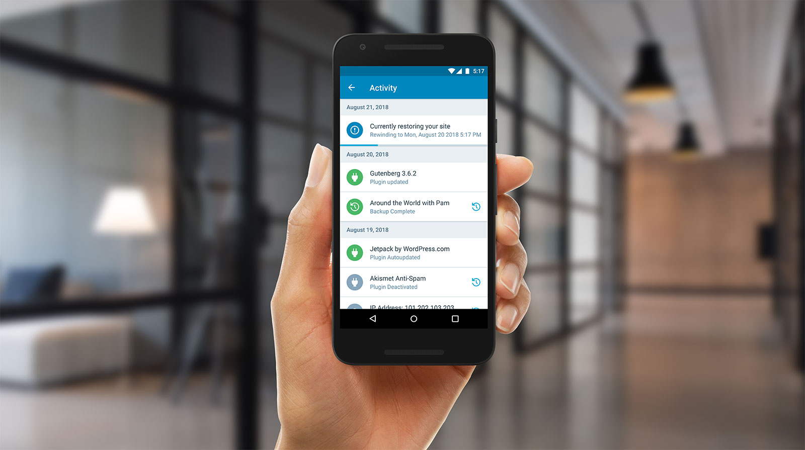 You don’t have to be stuck at your desk to keep a close eye on your site. Access your site’s activity directly from the WordPress mobile apps, and enjoy peace of mind from wherever life takes you.