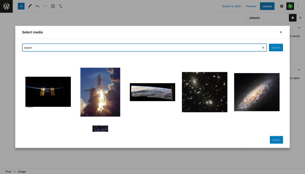 Openverse is a search engine for openly-licensed media that we’ve added as an external media provider. This will allow you to search Openverse for images you’d like to use right from the post editor! Just add an Image or Gallery Block and click Select image(s) to get started.