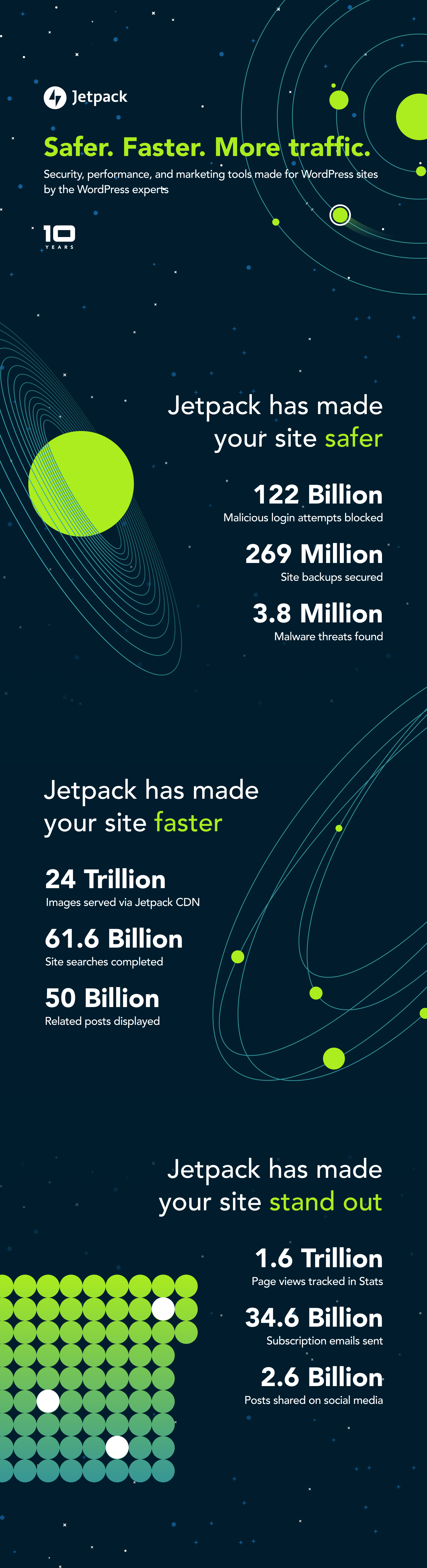 Check out our birthday celebration site for an interactive exploration of how Jetpack has helped WordPress sites over the years.