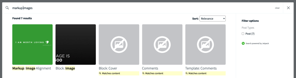 We also made Jetpack Search even faster on your site! This release significantly reduces the size of the JavaScript assets that enable the Instant Search experience. We’ve also added lazy loading of search result images, which defers loading these images until they are visible to the user.