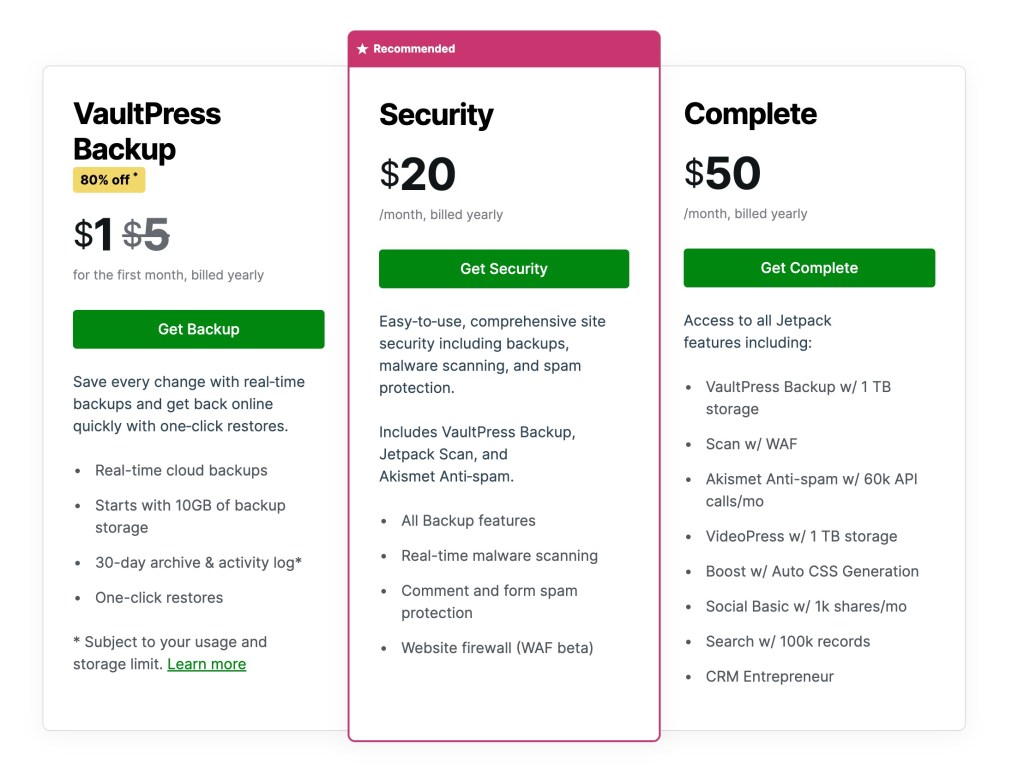 At a minimum, you’ll need the Backup plan, but Security and Complete provide additional tools for protecting, growing, and speeding up your site.