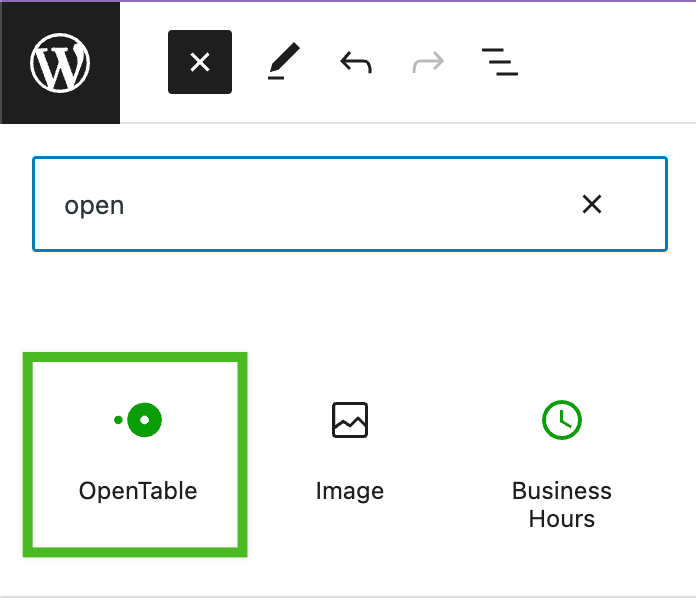 With the OpenTable block, you can add a reservation form on posts or pages.