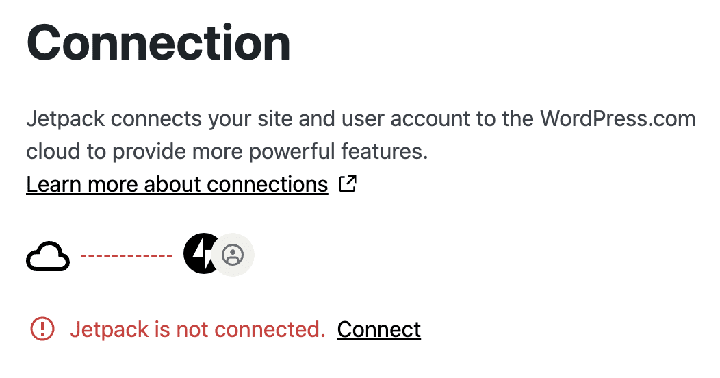 - In the WP Admin, go to Jetpack → My Jetpack and scroll to Connection.