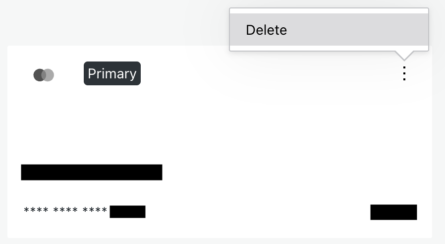 To remove a payment method, click on the three dot menu and then click Delete.