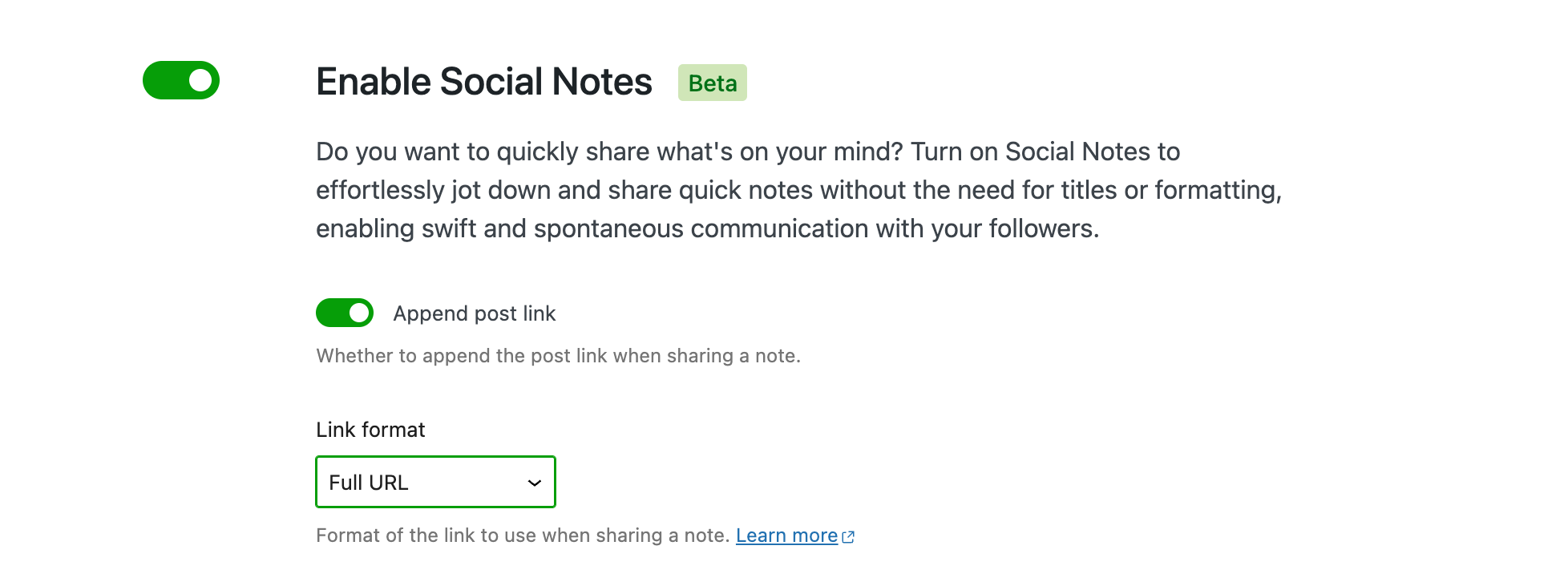 By default, a full link to your note will be added to the posts that get shared to your jetpack social connections. You can choose to not have a link appended and/or format how it appears.